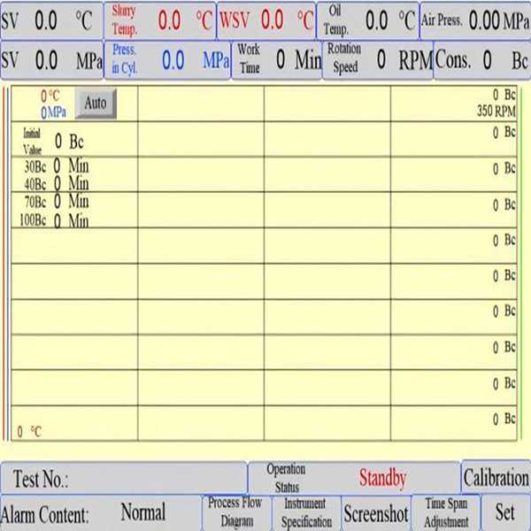 A new generation of fully automatic instrument used to simulate the high temperature and high pressure environment underground and continuously measure the consistency change and thickening time of oil well cement.